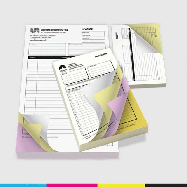 Talonarios autocopiativos, con troquel superior, numerados, original y dos copias, tamaño A4, 1 tinta 1 cara.